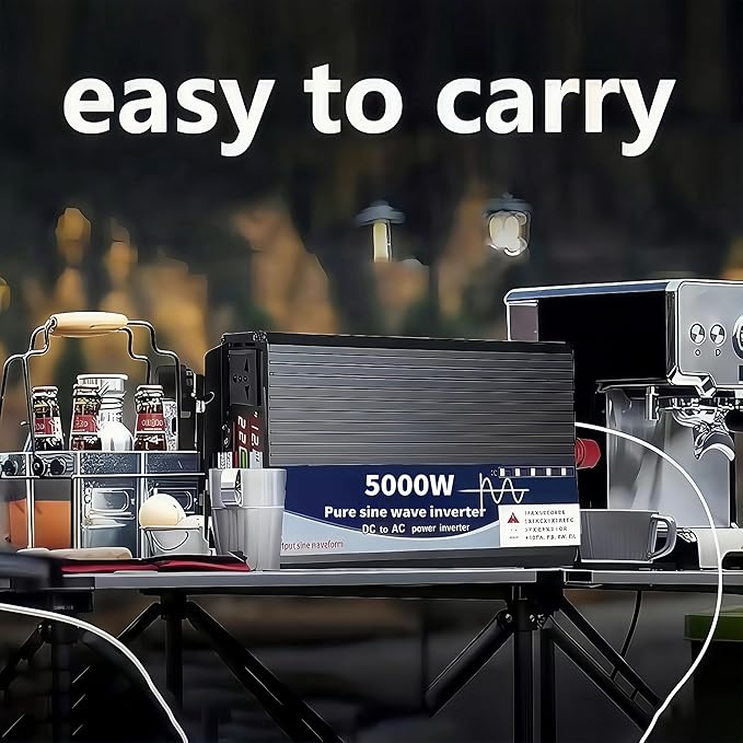 - 1.Power Inverter: This is a real pure sine wave inverter, stable and efficient. 5000W of continuous power, converts 24V DC power to 110V AC power, this power inverters features 2 standard North American 110V AC power outlets, can be used forem, ergency, travel, camping or workplace AC appliances or large electrical devices such as TVs,