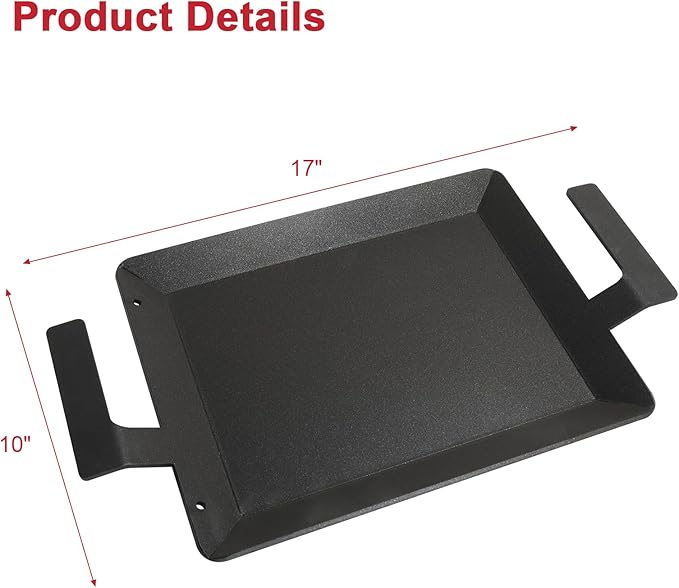 - Wide Compatibility: 17" x 10.5" Universal Griddle plate for gas grill/charcoal electric grills, gas stove, gas cooktops, oven or campfire, carbon flat top cooking griddle fit Weber, Camp Chef, Charbroil, Nexgrill, Pit Boss, Dyna-Glo, Members Mark, etc. it is also compatible with Made in's outdoor grilling system, carbon steel griddle is suitable for camping, tailgating, and parties, 17" x 10.5" carbon flat top cooking griddle - please check and compare the size of your grill before orderin