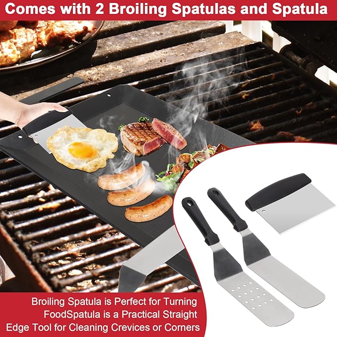 - Nonstick Carbon Steel Griddle: Universal carbon steel flat top plate made of heavy-duty carbon steel metal to ensure long-lasting usage, heat resistant - not eay deform and warp, handles heat up to 1200F, uniform heat distribution and fast heat transfer for excellent cooking results, carbon flat top pan also has two side handles, easy to pick up