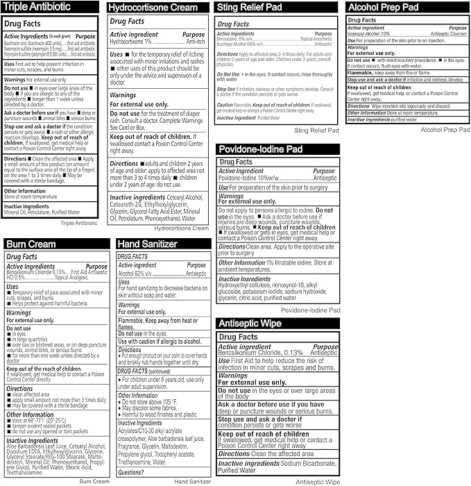 - MULTIPLE INDIVIDUAL COMPARTMENTS WITH LABELS - Multiple individual compartments are labeled for greater organization and easy access to what you need quickly in an emergency. Make it easy for you or your family to deal with emergencies on the go without panicking.