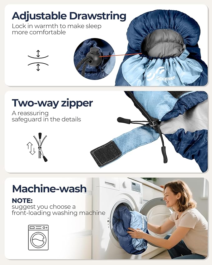 Sportneer Sleeping Bags for Adults, Warm & Cold Weather Sleeping Bag for Adults Kids Boys Girls - Lightweight Compact Camping Gear Equipment, Traveling, Backpacking, Hiking
