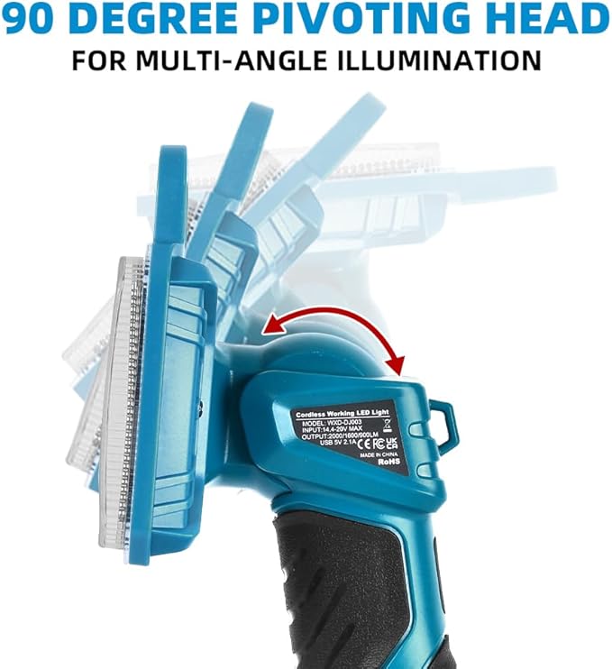- 【Super Bright 2000 Lumens Flashlight】Makita LED work light is equipped with 36 high-quality LED beads (22 spotlight and 14 floodlight wicks). This handheld flashlight delivers an impressive 2000 lumens of brightness. The floodlight mode illuminates a wide area, while the spotlight mode can reach over 300 yards. Caution: Avoid looking directly at the light to protect your eyes.
