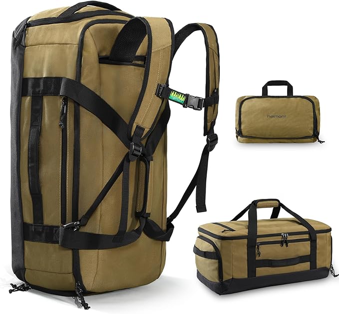 Haimont Large Collapsible Duffle Bag Backpack for Travel, Water-Resistant 60L Weekender Bag with Shoe Pocket, Men & Women, Sports, Traveling, Camping, Outdoor, Brown