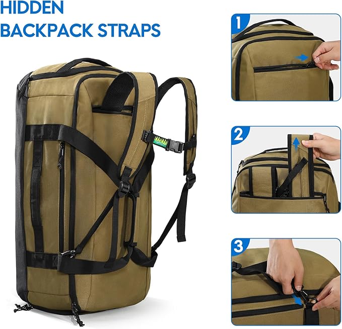 - Convertible Carrying Options: This duffel bag comes with removable and adjustable backpack straps and chest strap for hands-free carrying. It can easily be converted to a shoulder or backpack style, allowing for maximum comfort and convenience during your travels