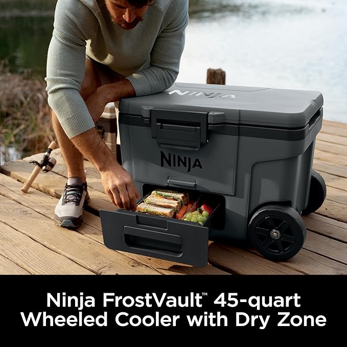 Ninja | Cooler | FrostVault 45QT Cooler with Wheels | Insulated with Temp Dry Storage Drawer | Keeps Ice Cold for Days | for The Beach, Camping, Picnics & More | Grey | FB245CG
