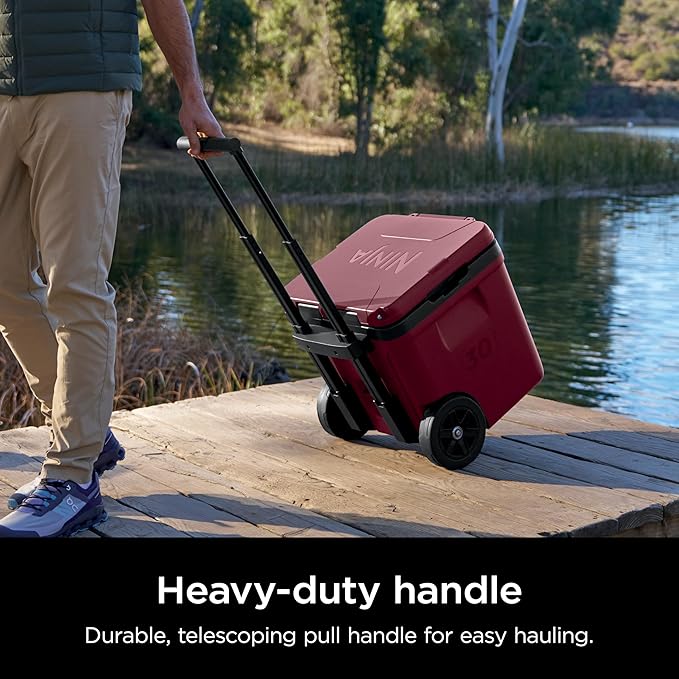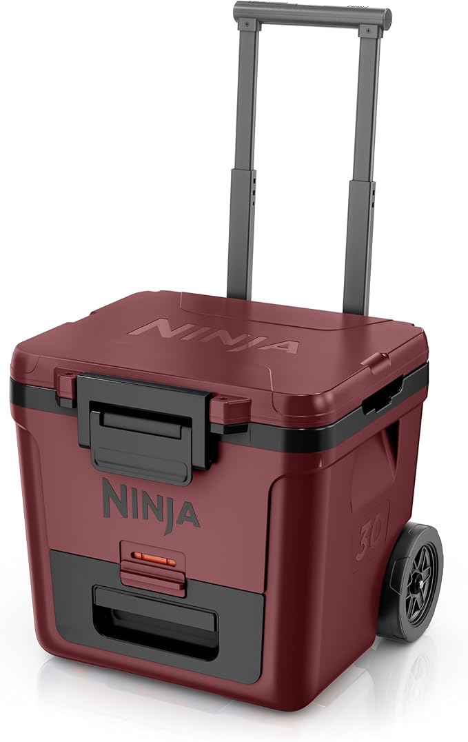 Ninja | Cooler | FrostVault 30QT Cooler with Wheels | Insulated with Temp Dry Storage Drawer | Keeps Ice Cold for Days | for The Beach, Camping, Picnics & More | Canyon Red | FB230MR