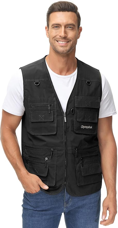 - Features: Zipper front, V neck, 14 functional pockets and 3 "D" rings, serves for travel, volunteer, hiking or just for very tasteful casual wear