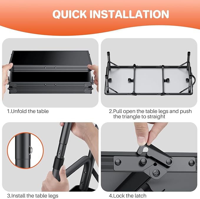 - 【Easy to clean】This folding camping table with MDF tabletop design, which is very flat and easy to clean, just wipe it with a damp paper towel to remove stains easily