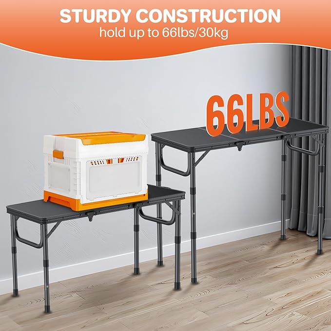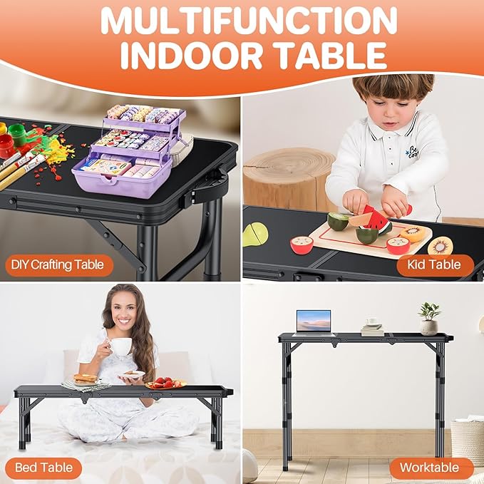 - 【Multipurpose Design】The camp table with carry handle is very convenient to carry to outdoor RVs, patio, beach, balcony and garden to meet various needs and environments. Ideal for camping, barbecue, picnic, parties, hiking, etc
