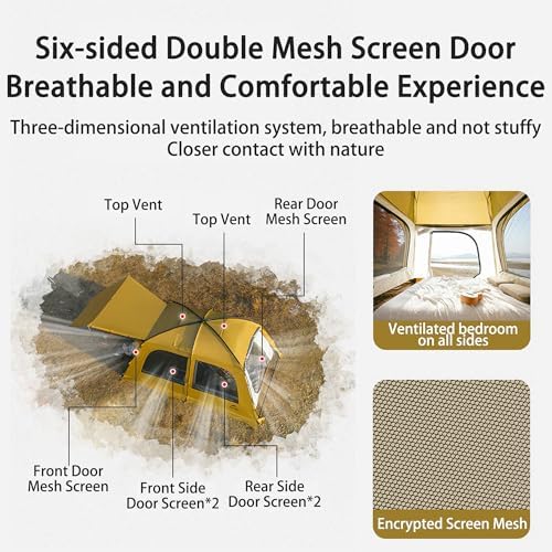 - 【Breathable and Portable Tent】Tent with six-sided double mesh screen door, ventilation and anti-mosquito both, three-dimensional ventilation system, closer contact with nature. It weights 11.8kg/26lbs, you can easily carry it with the carry bag and store it without taking up much space.