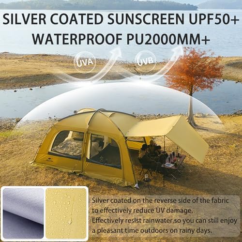 - 【Easy to Set Up】: 3 high-quality aluminum alloy tent poles are self-supporting, cross-stable and wind-resistant, enjoying a large space. Also Easy to disassemble and save your time. And removable inner tent, hall and bedroom switch at will, large space living room tent, provide comfortable space for friends to gather, front hall and back bedroom partition, to meet the multiple needs of privacy, comfortable sleep and leisure.