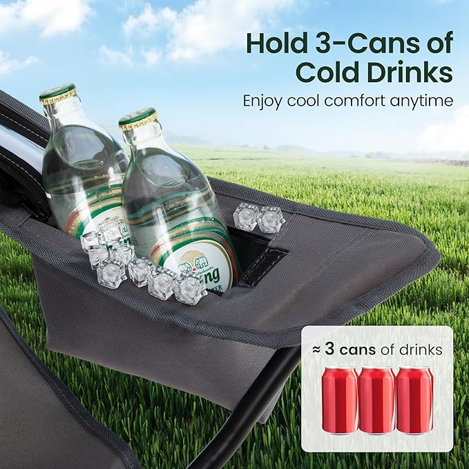 - Convenient Storage:Armrest with a durable mesh cup holder makes your hands free, while the cup holder supports your drinks and prevents spills. Cooler bag and mesh cup holder design will keep your drink cool on a hot summer! Side storage pocket storage your phone, magazine or larger items