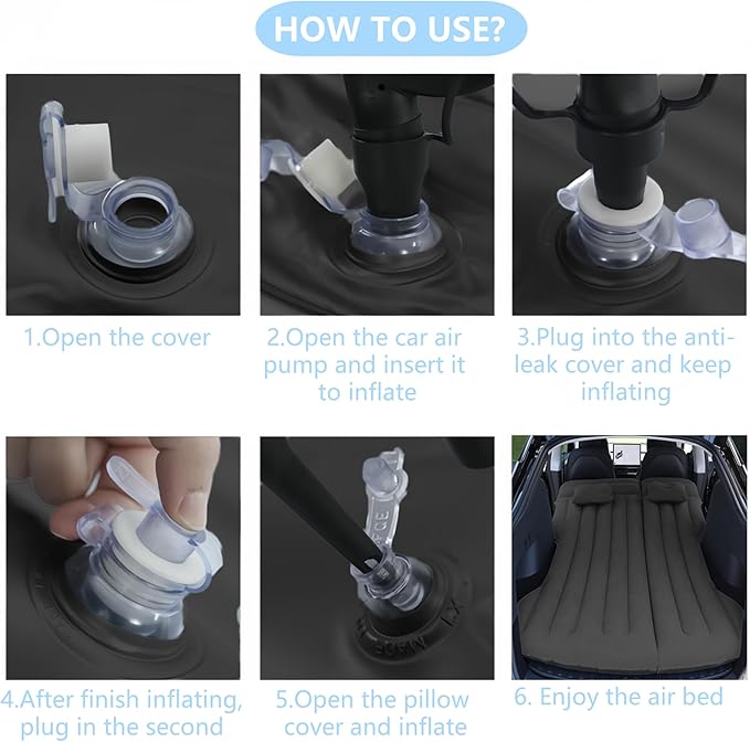- EASY TO INFLATE/DEFLATE AND CARRY: The car blow up mattress / car bed mattress come can be inflated quickly within 2-3 minutes. When you no longer use it, you can quickly deflat and fold the air mattress, the suv mattress can be easily stored in the handbag easy to carry and does not take up space. The inflatable car bed for is an ideal car sleeping mat, camping mattress pad or car inflatable bed. Perfect for night driving or overnight fishing, enjoying movie time, self-driving travel , and camping in outdoor tents.