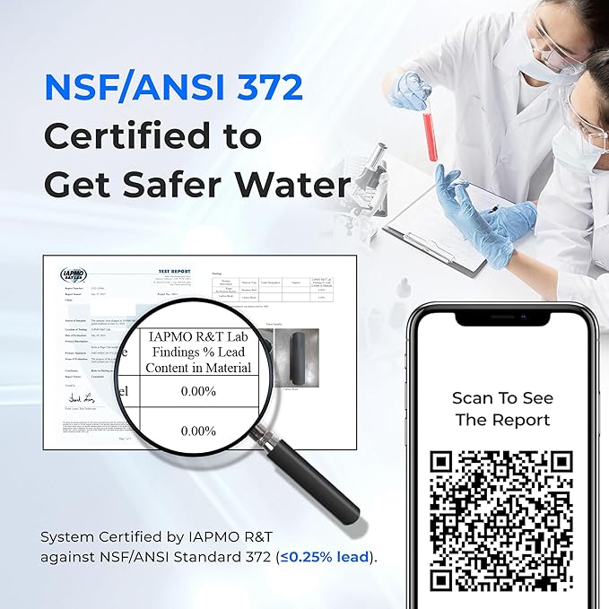 - [Durabel Stainless-steel Construction] Crafted from premium food-grade 304 stainless steel, this home water filtration system ensures long-lasting durability, eliminating concerns about rusting and degradation over time. The stainless-steel faucet not only lends a touch of elegance to your kitchen or space but also guarantees safety and stability during use.