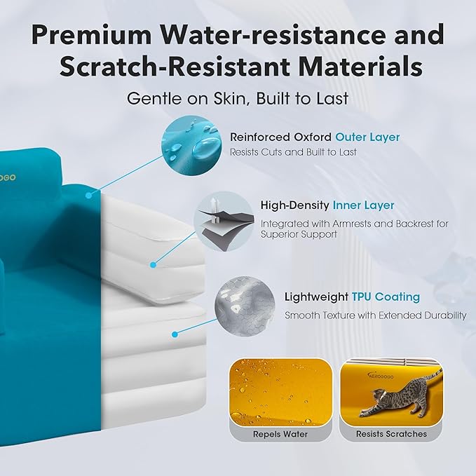 - 【Dual-Layer Design & Easy Maintenance】Aerogogo inflatable couch features a durable dual-layer construction, combining a high-quality 300D polyester fiber outer layer with a highly elastic PVC inner layer for enhanced support and longevity. The removable outer cover allows for effortless machine washing, ensuring easy maintenance and long-lasting comfort. With its washable design, keeping your inflatable air sofa clean has never been easier—just remove the cover and toss it in the wash!