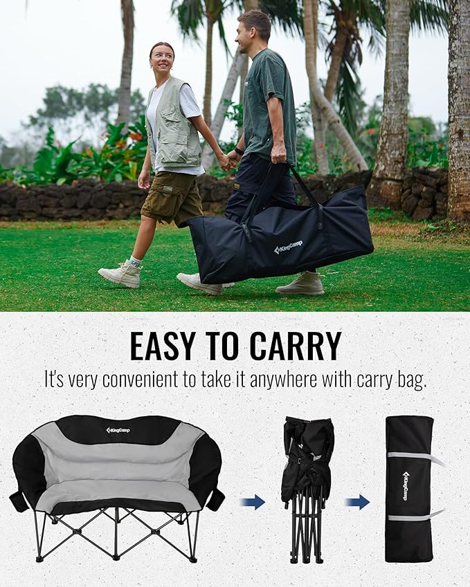KingCamp Double Camping Chair, Oversized Heavy Duty Loveseat for Adults Portable Folding XL 2 Person Couch Padded Comfortable Two Seat with Cup Holder for Outdoor Lawn Backyard