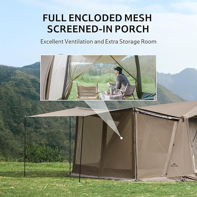- Versatile Camping Tent: 4 setup modes adapt to any scenario: Full-Open Mode for stargazing, Enclosed Mode for privacy, Awning Mode for shaded relaxation, or Porch-Only Mode to connect with nature. Perfect for camping, hiking, party, festival, family car camping!