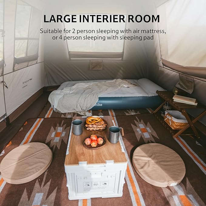 - All-Weather Dual-Layer Protection: Inner tent with 5-sided breathable mesh maximizing airflow. 3000mm PU-coated rainfly + taped seams create waterproof shield against rain/snow. It is a great camping tent suitable for all weather and all season.
