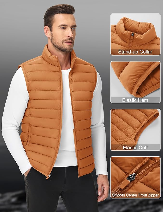 Cotrasen Men's Puffer Lightweight Vest Packable Outerwear Vest Warm Winter Outdoor Sleeveless Jacket for Travel Running