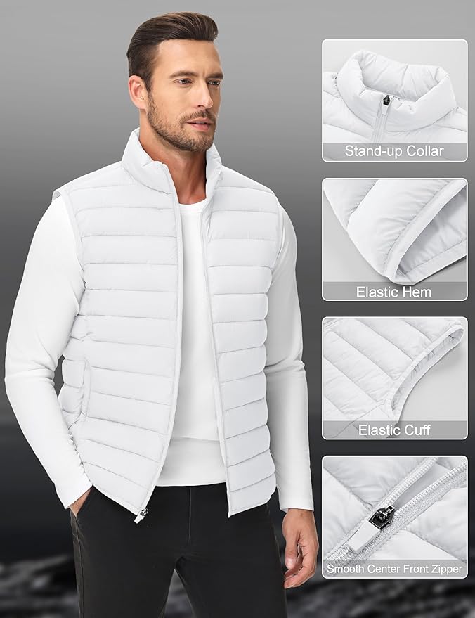 • Occasion: Lightweight puffer vest suitable for golf, travelling, camping, hiking, skiing, snowboarding, etc. Wear it on a T-shirt, long-sleeved shirt, button-down shirt or sweater, and it's a must-have outdoor casual item in your wardrobe. Versatile and can be worn all season.