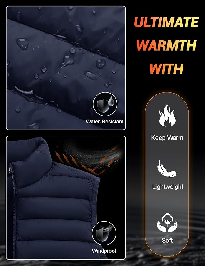 • Water-Resistent & Windproof: Cotrasen puffer vest is made of windproof and water resist material. Breathable nylon windbreaker shell and soft polyester synthetic lining keep you warm and cozy in the winter.