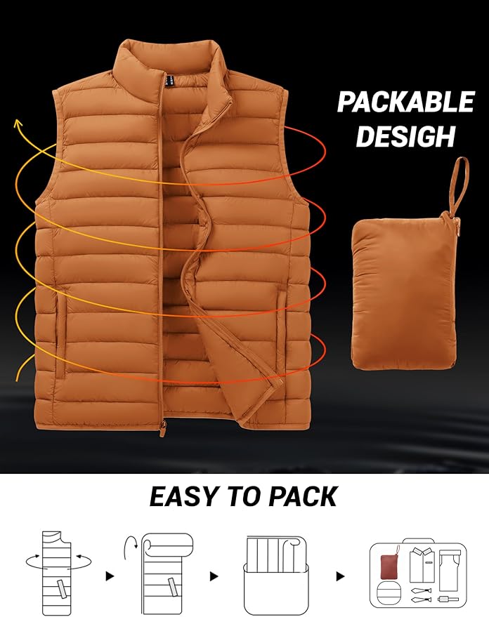 - Occasion: Lightweight puffer vest suitable for golf, travelling, camping, hiking, skiing, snowboarding, etc. Wear it on a T-shirt, long-sleeved shirt, button-down shirt or sweater, and it's a must-have outdoor casual item in your wardrobe. Versatile and can be worn all season.