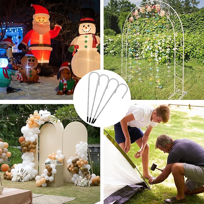 - Multiple Applicability: The yard stakes can be used as landscape fabric stakes, turf stakes, tent stakes, fence stakes, etc. Or as ground stakes for outdoor decorations, fixing balloons, lights, inflatable dolls for festivals or party.