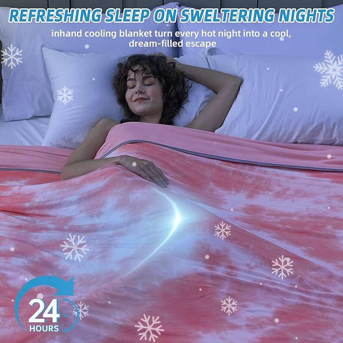 - A COOL NIGHT'S SLEEP: Our special arc-chill cooling fiber ice blanket can brilliantly absorb your body heat, lower skin temperature by 4 to 9℉ instantly, keep skin cool until you wake up. On sweltering nights, you can sleep comfortably under cooling blanket queen size without breaking out in a sweat. It is a perfect cooling bedding blankets for hot sleepers, hot flashes, and night sweaters.