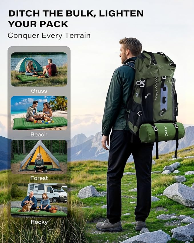 - 【Lightweight & Portable】:The backpacking sleeping pad folds down to a compact 11" x 6" and weighs only 2.16 lbs—easy to pack without adding bulk to your backpack. Perfect for camping, hiking, beach outings, car travel, or tent sleeping, this camping pad is a true camping essential for outdoor comfort.