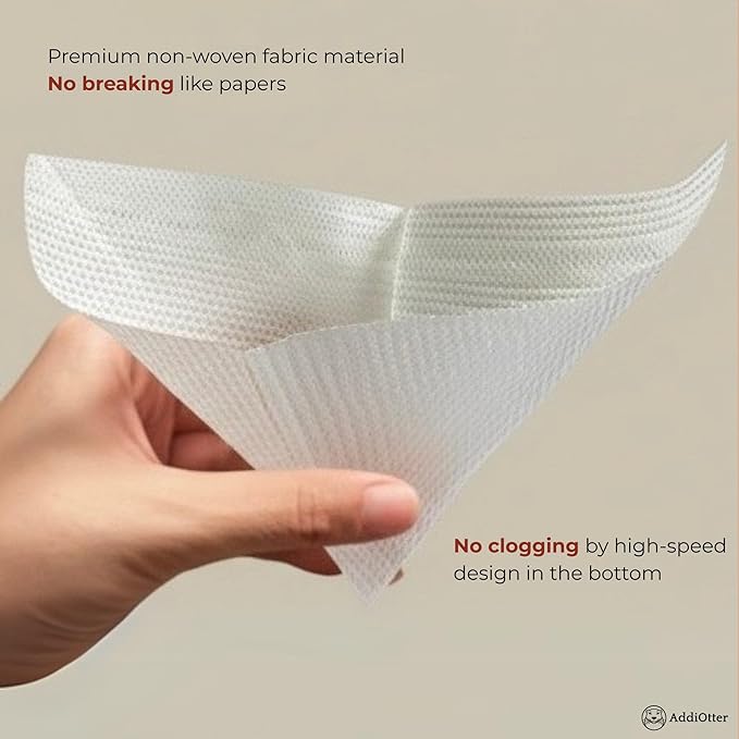 - Enhanced Coffee Extraction for Discerning Tastes: AddiOtter Disposable Fabric Coffee Filters are crafted with premium non-woven fabric and multilayered densities. They are designed to optimize water flow, prevent clogging, and deliver a smoother, cleaner brew. Skip the pre-wetting step for paper filters and enjoy barista-quality pour-over coffee every time. Great for coffee lovers upgrading their coffee maker or experimenting with new brewing techniques.
