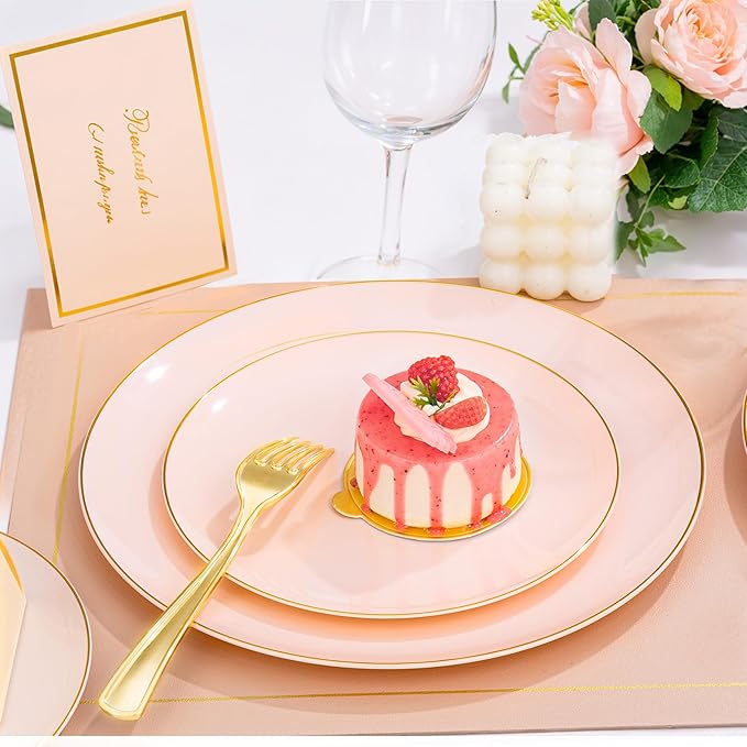- RELIABLE MATERIAL: Our pink and gold plates is made of high-quality food-grade plastic, BPA-free! These can handle hot, cold, and wet food without leaking or spilling