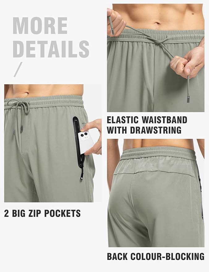 TBMPOY Men's Lightweight Hiking Travel Pants Breathable Athletic Fishing Active Joggers Zipper Pockets