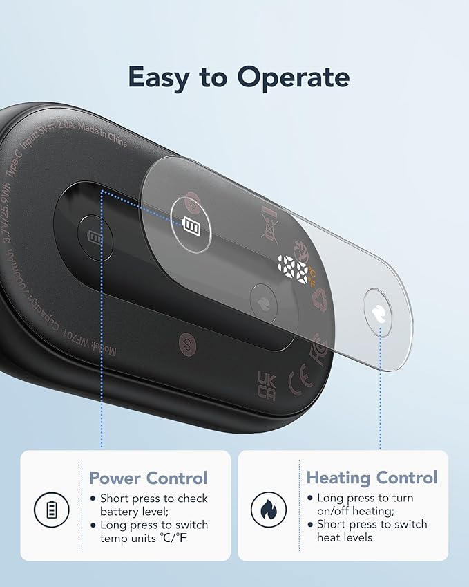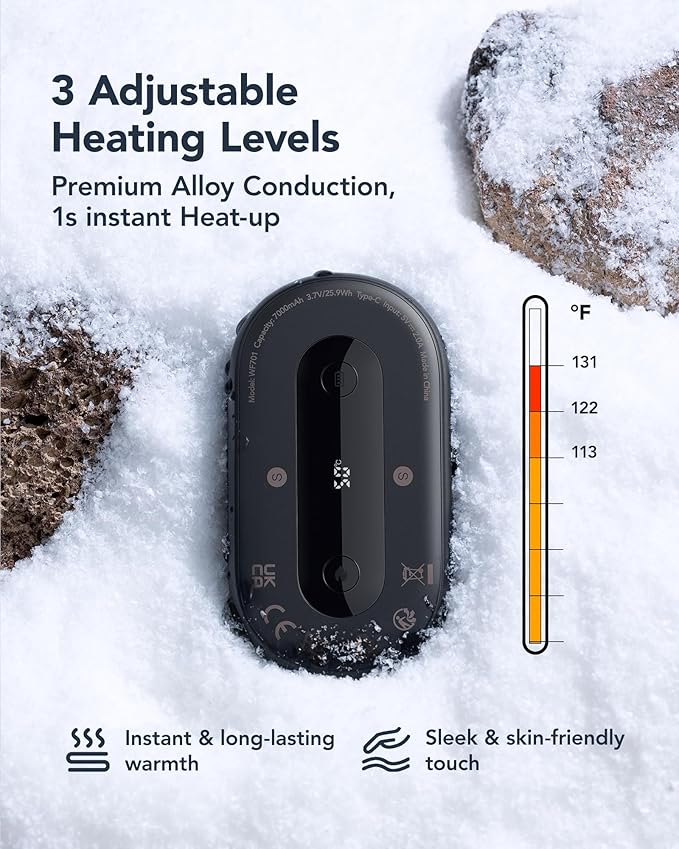 - 1s Instant Heating-up: Equipped with advanced aluminum alloy conduction quick heating technology, this electric hand warmer heats up in just 1 second, offering immediate relief in cold conditions. Perfect for on-the-go warmth during winter commutes, outdoor adventures, or simply staying cozy at home