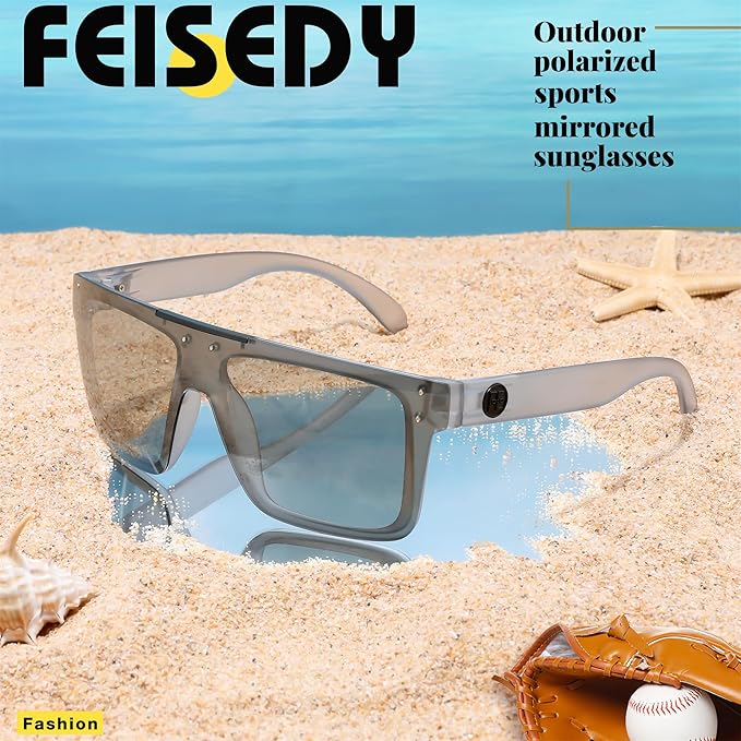 FEISEDY Men Sunglasses Polarized Oversized Square Flat Top Cycling Running Fishing Golf Hiking Sports B2990