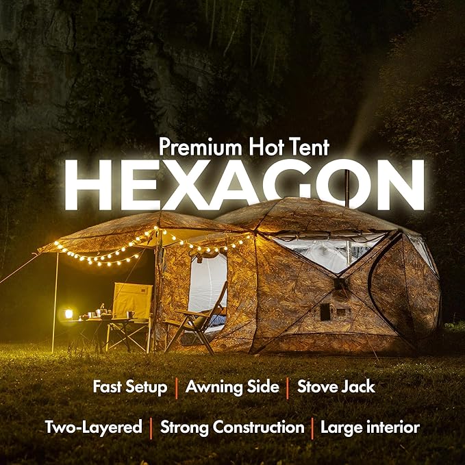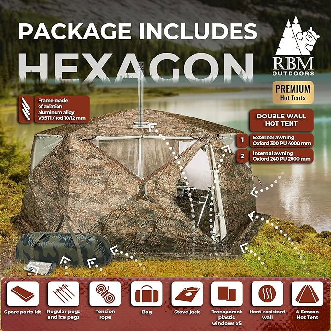 Rbm Outdoors Hot Tent with Stove Jack, Easy Setup 4 Season Winter Tents for Camping, Cold Weather Wall Double Layer Waterproof & Windproof Shelter