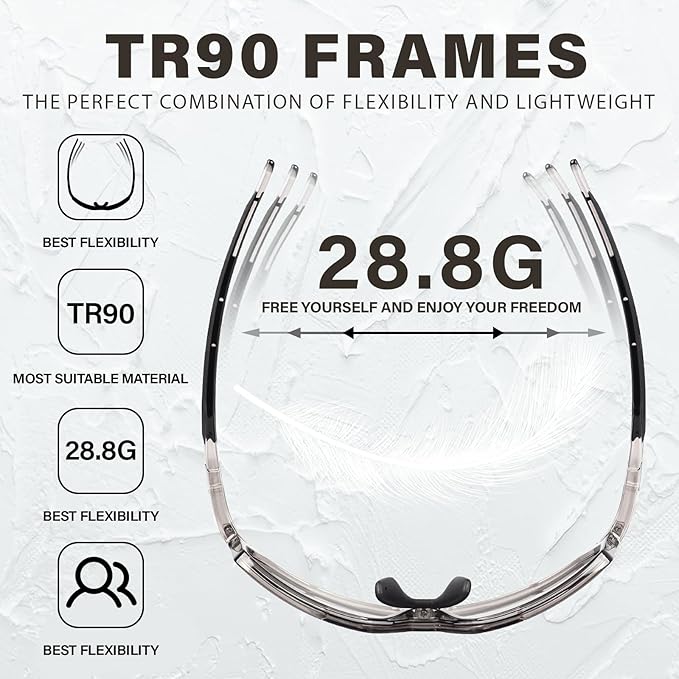 - Material & Safety: These cycling glasses are made of lightweight and durable polycarbonate polarized coating mirror lenses and TR90 frames