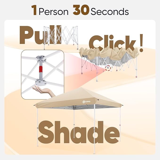 Sekey 10x10 Pop Up Canopy with One Push Setup-Easy Up Canopy with 99% UV Blocking - Instant Outdoor Sun Shade for Events, Parties, Camping- Commercial Gazebo with Weight Bags,Wind Proof&Waterproof