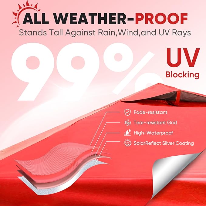 - ๐๐๐๐๐๐ ๐๐๐ ๐๐๐๐๐: Fade-resistant ๐ฐ๐ฎ๐ฌ๐ oxford fabric with ๐๐ถ๐น๐๐ฒ๐ฟ ๐ฐ๐ผ๐ฎ๐๐ถ๐ป๐ด, ๐จ๐ฃ๐ ๐ฑ๐ฌ+ fabric blocks 99% of UV rays, handles ๐ญ๐ฑ๐ฌ๐ฌ๐บ๐บ ๐๐ฎ๐๐ฒ๐ฟ ๐ฝ๐ฟ๐ฒ๐๐๐๐ฟ๐ฒ. Featuring carbon steel frame for unmatched durability. Made to offer lasting shade, year after year.
