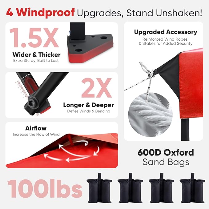 - ๐๐๐๐๐๐ & ๐๐๐๐๐๐: Sandbags hold ๐ญ๐ฌ๐ฌ๐น๐ฏ๐ for added stability, ๐ญ. ๐ฑ๐ ๐๐ถ๐ฑ๐ฒ๐ฟ footpads for a solid base, ๐ฎ๐ ๐ฑ๐ฒ๐ฒ๐ฝ๐ฒ๐ฟ crossbar joints to resist bending, and 4 wind ropes & 8 stakes for extra security. Perfect for everyday outdoor adventures!