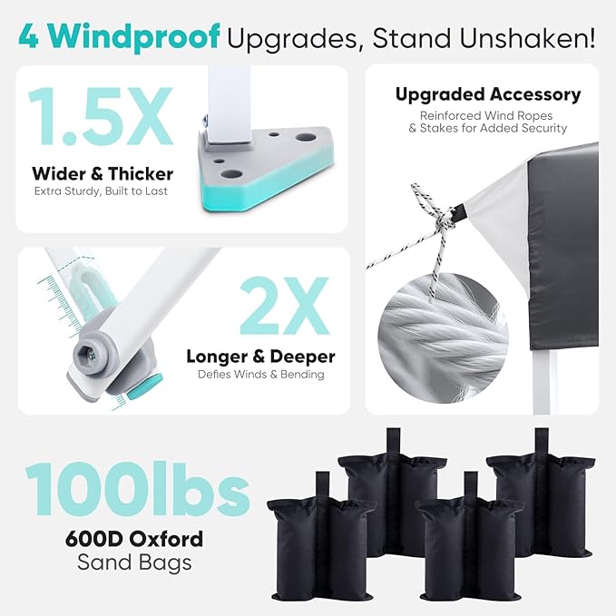 - ๐๐๐๐๐๐ & ๐๐๐๐๐๐: Sandbags hold ๐ญ๐ฌ๐ฌ๐น๐ฏ๐ for added stability, ๐ญ.๐ฑ๐ ๐๐ถ๐ฑ๐ฒ๐ฟ footpads for a solid base, ๐ฎ๐ ๐ฑ๐ฒ๐ฒ๐ฝ๐ฒ๐ฟ crossbar joints to resist bending, and 4 wind ropes & 8 stakes for extra security. Perfect for everyday outdoor adventures!