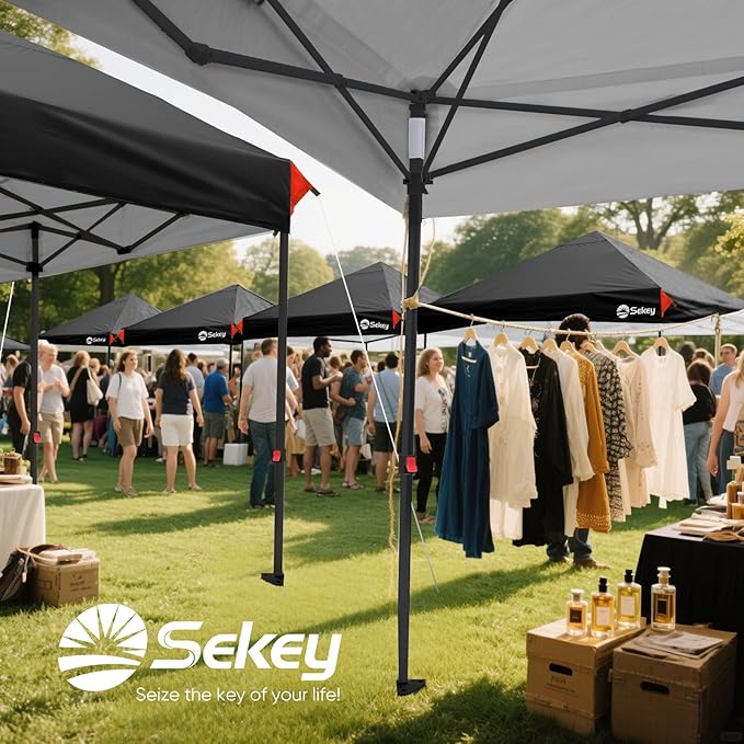 Sekey 10x10 Pop Up Canopy with Pockets Sidewall, One Push Setup Instant Outdoor Gazebo, Instant Easy Up Canopy with UPF50+ Top, 4 Weight Bags for Events, Beach, Patio, Camping