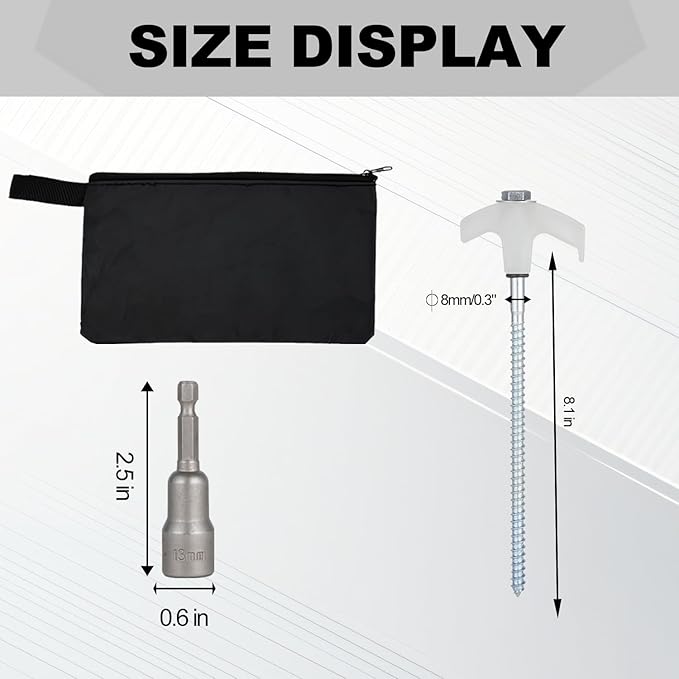 - Sturdy and durable:Camping stakes are 8 inches long and 0.31 inches in diameter.have threaded details for a stronger grip and can be adapted to a variety of surfaces, whether it's grass, hard soil, gravel or any other ground, he can hold on to it firmly.