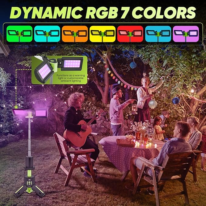 - 【DYNAMIC RGB LIGHTING & SOS MODE】This camping lantern features 7 RGB COLORS, WHITE, and GOLDEN LIGHT with 5 BRIGHTNESS LEVELS. Choose GRADIENT MODE or fix a single color for customized lighting. The THREE-LEAF DESIGN enables single, double, or full illumination. Its FLASH WARNING MODE doubles as an SOS SIGNAL with 4 SPEEDS, adding safety for outdoor adventures. Ideal for setting moods, lighting parties, or handling emergencies effortlessly.