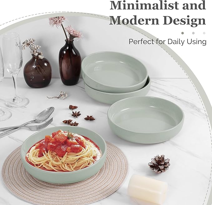 HaWare Pasta Bowls Set of 4, 33oz Large Salad Bowls for Home Kitchen, Ceramic Serving Plates for Soup, Cereal, Wide and Shallow Dinner Bowl, Microwave & Dishwasher Safe, Asparagus Green