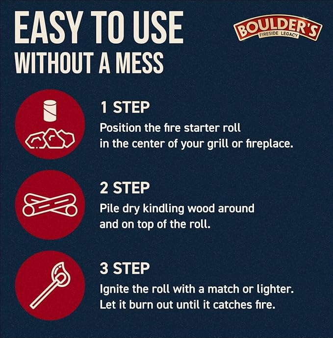 - RELIABLE, WATERPROOF & WINDPROOF - rolls ignite in wet windy conditions, camping grill, outdoor fireplace, fire pit, campfire, cooking equipment, wood stove accessories, charcoal chimney, fire starter kit