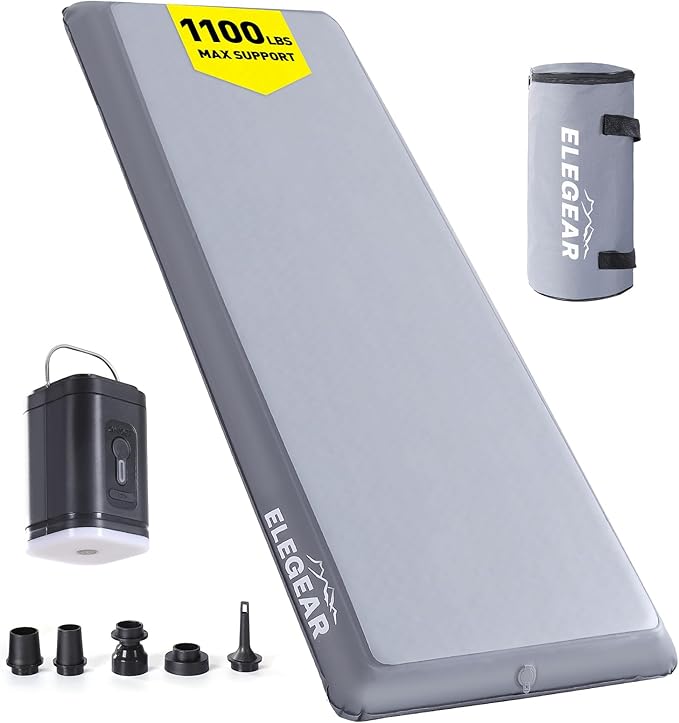 - 【Easy to Carry and Use】- Portability meets convenience with the Elegear camping mattress. It comes with an external rechargeable electric pump for quick and effortless inflation and deflation. Once deflated, it rolls up into a compact size, saving valuable space in your backpack or car. Whether you’re camping, backpacking, or on a road trip, this camping mat is designed to make your outdoor experience hassle-free. Its lightweight and portable design make it a must-have for adventurers and families alike.