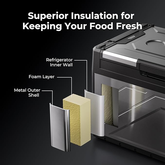 - 15-minute Fast Cooling: At an ambient temp of 77℉, the 12 volt refrigerator takes 15 minutes to cool down from 77℉ to 32℉ when used as a single zone, (fridge condition: empty and set to max mode), helping you keep your food fresh. The car freezer is no ice needed, no need to worry about the hassle of melting ice