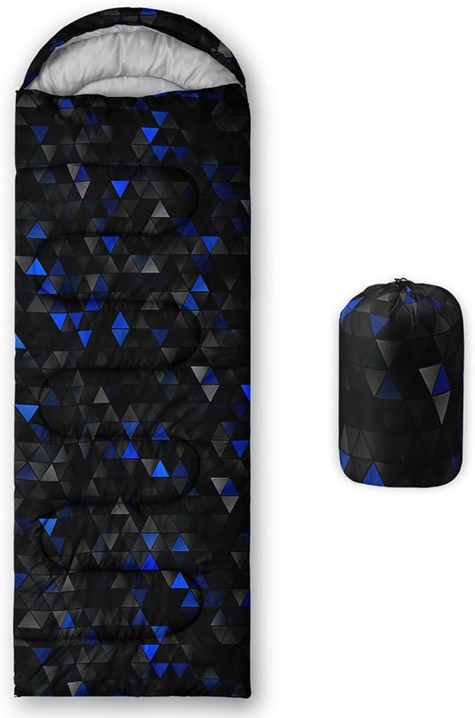 - Premium Material - The camping sleeping bag is made of premium 220T ripstop microfiber fabric,comfortable and breathable,lined with 220T cotton pongee. The waterproof outer protective shell is made of a unique hexagonal design and high-quality Material with double S-stitching and microfiber filling for optimal warmth and insulation to protect you from the elements. The bright colors are loved by boys and girls,great for kids and adults alike!