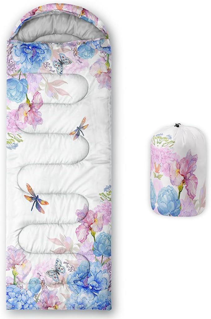 Sleeping Bags for Adults and Kids,3D Printing Camping Sleeping Bag for Girls Boys Lightweight Waterproof Cold/Warm 3-Season,Outdoor Travel with Compression Bags