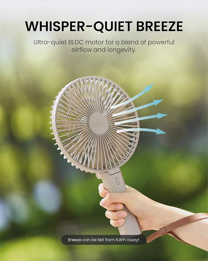 - POWERFUL, QUIET COOLING: Featuring a high-performance BLDC motor and 7-blade design, it delivers smooth airflow up to 6.8 meters while operating whisper-quiet, making it ideal for home, office, and outdoor use.